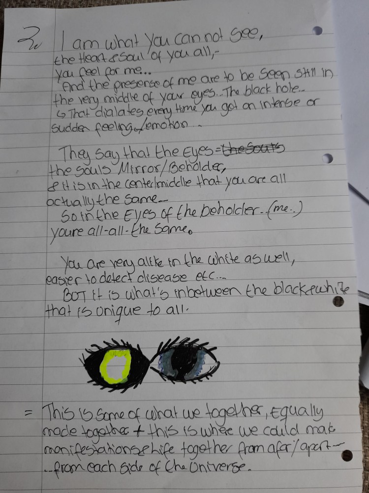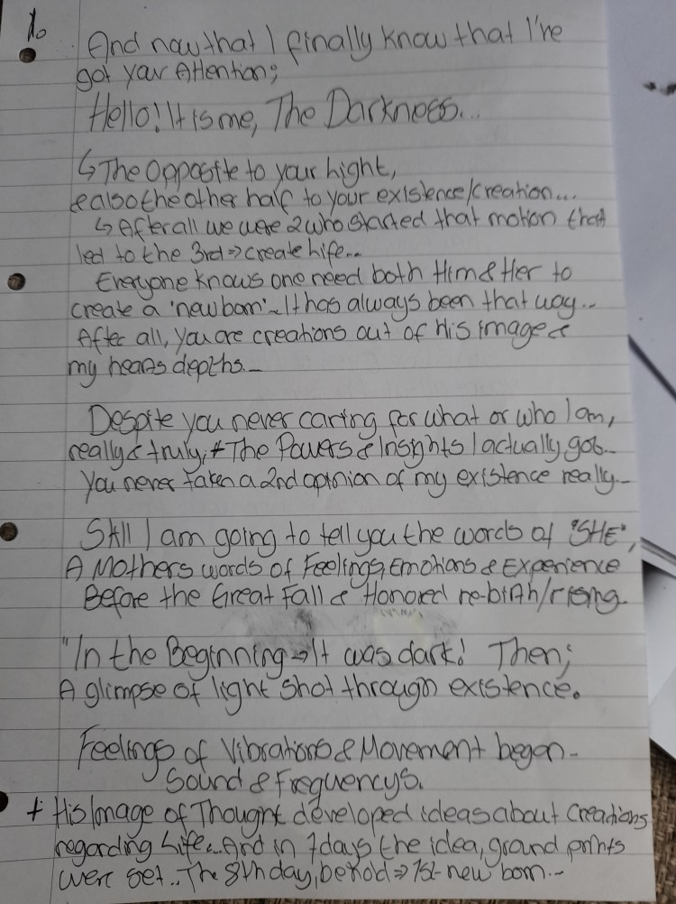 ALSO,- we do not have Demons, those came from “EVES Death-star…” And most feared demons=Created out of man… We do not relly care much for your evil creations & fears… Soon they will be history anyway..
