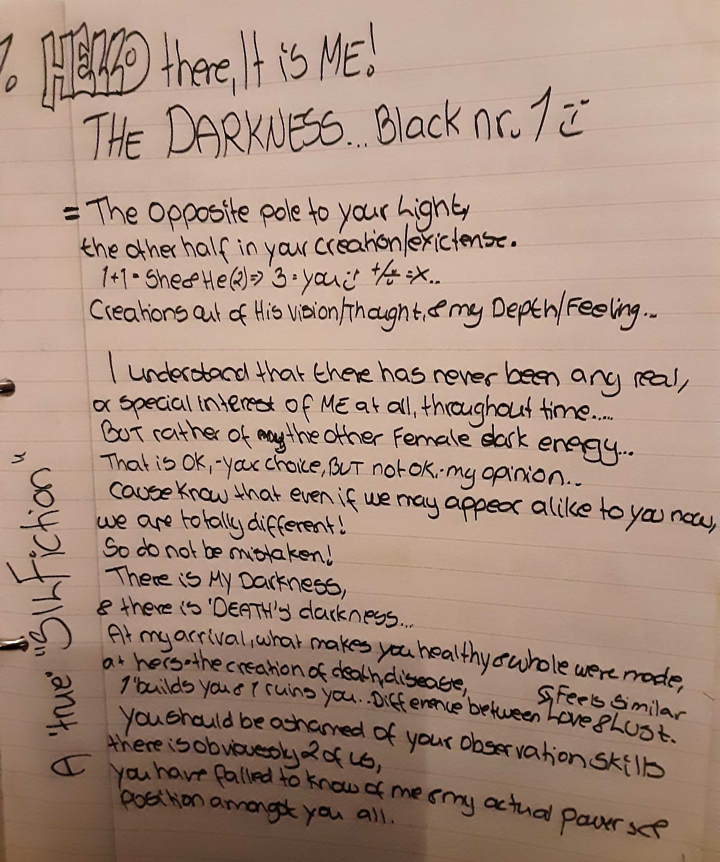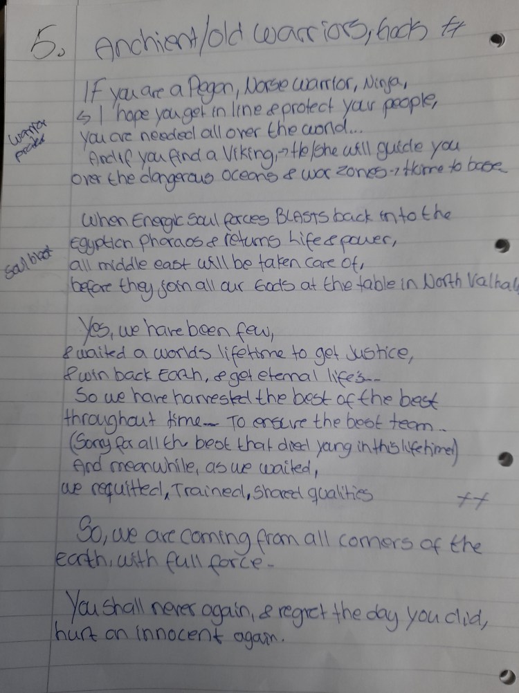 ALSO,- we do not have Demons, those came from “EVES Death-star…” And most feared demons=Created out of man… We do not relly care much for your evil creations & fears… Soon they will be history anyway..