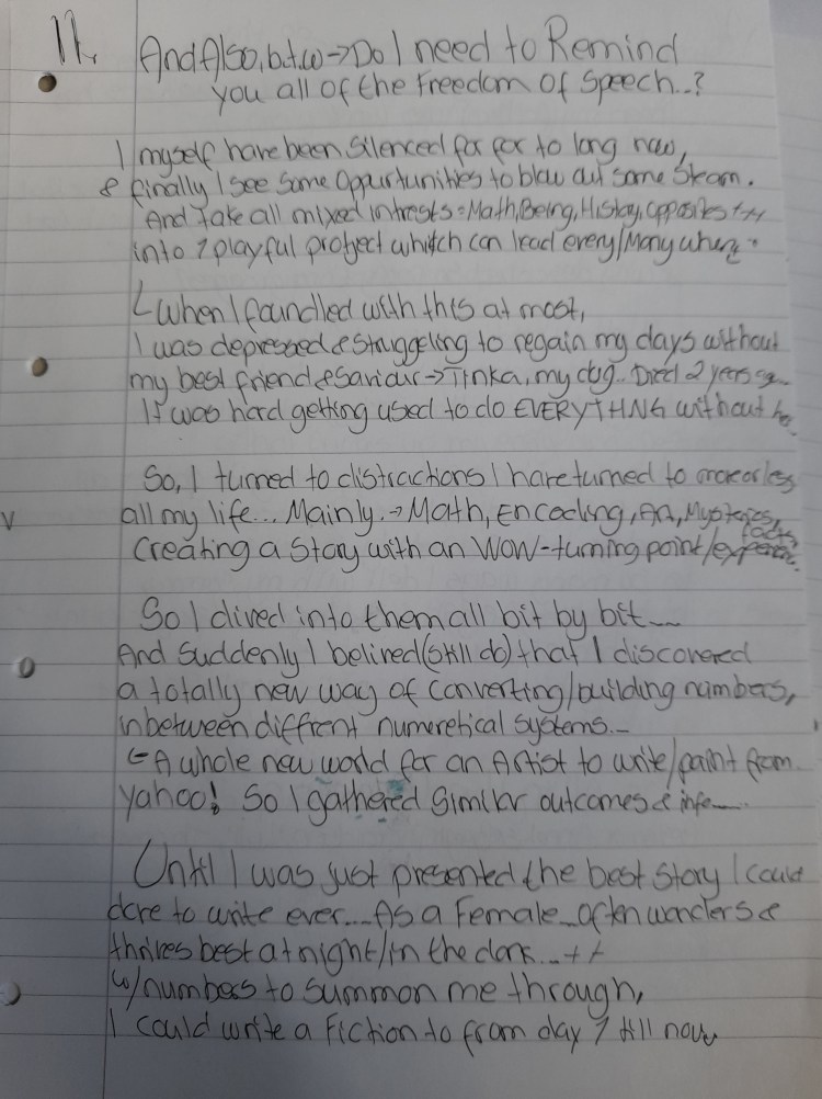 I know I could make the pages nicer, or write it in instead of just taking pictures to put out… BUT maybe I fix it in time… For now, the head barely works, I am lazy, & have tonns of other things to think about… I just have to throw this out there for now,- to see if ANYTHING…. And if nothing, so be it…